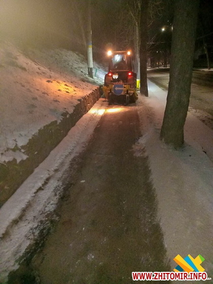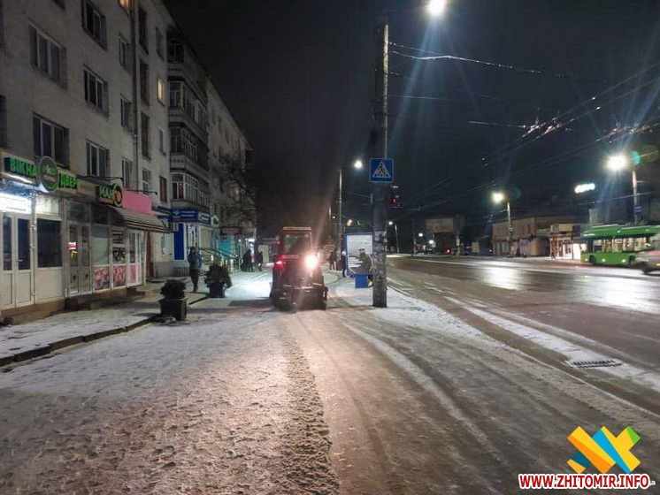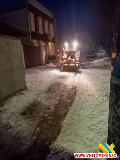 У Житомир повернулася зима: для ліквідації наслідків снігопаду та ожеледиці задіяли 22 одиниці техніки.