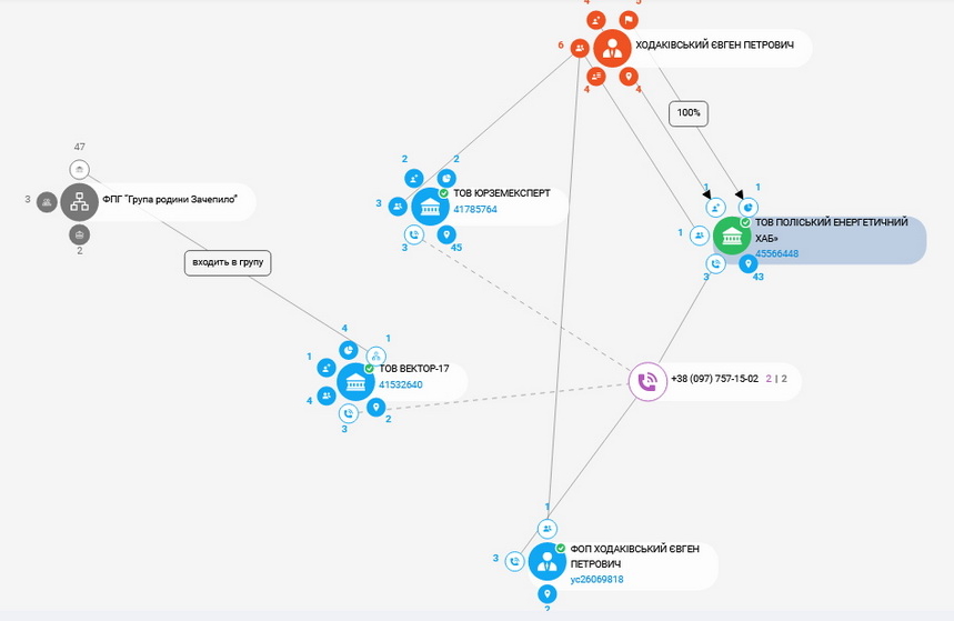 За інформацією аналітичного порталу YouControl, ТОВ «Поліський енергетичний хаб» пов’язане з групою родини Зачепило з Харківської області – співвласників мережі АЗС «Marshal».