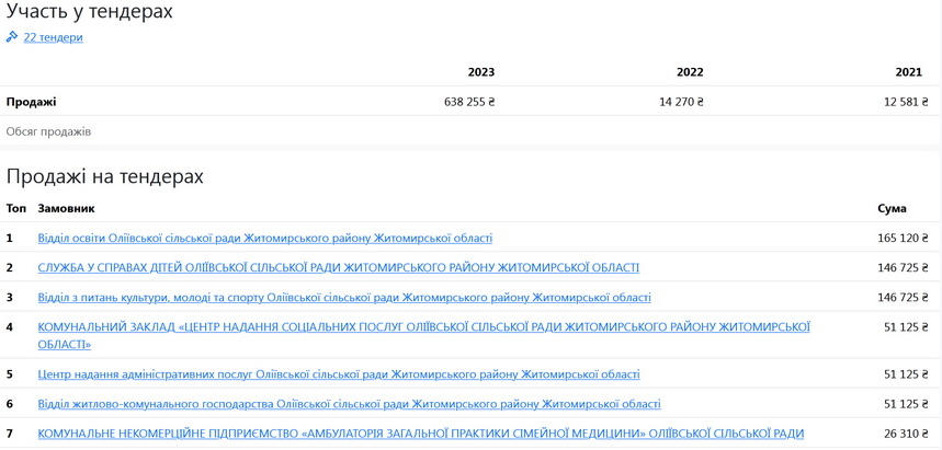 За даними Опендатабот, за 2021-2023 роки «Житомироблдрукарня» заробила на тендерах менш ніж 700 тис.грн, найбільшим замовником були підрозділи Оліївської сільської ради, договори переважно стосувалися виготовлення зошитів, журналів та брендованих подарункових коробок.