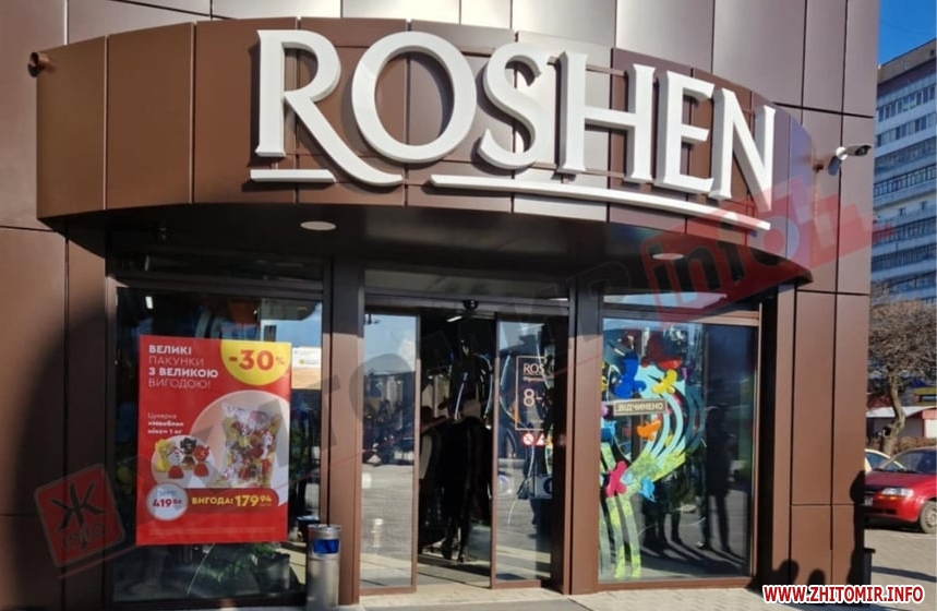 У Житомирі біля торгівельно-розважального центру «Глобал» відкрили магазин кондитерської фабрики «Roshen».