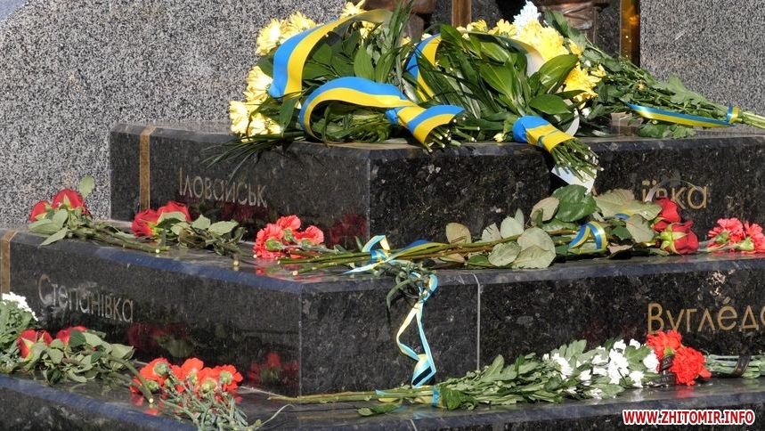 Традиційно квіти принесли й до пам'ятного знаку «Захисникам України у війні з російським агресором» та до меморіальних стендів учасників АТО/ ООС, які встановленні на майдан Перемоги.