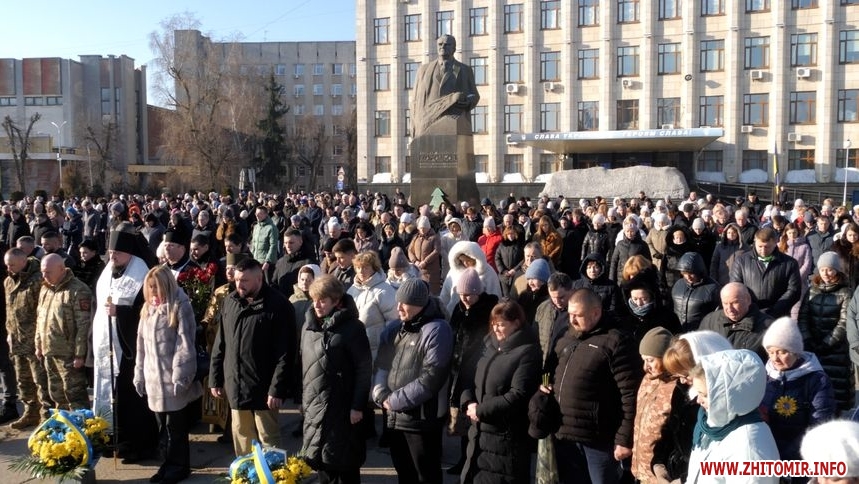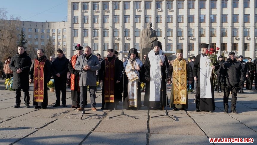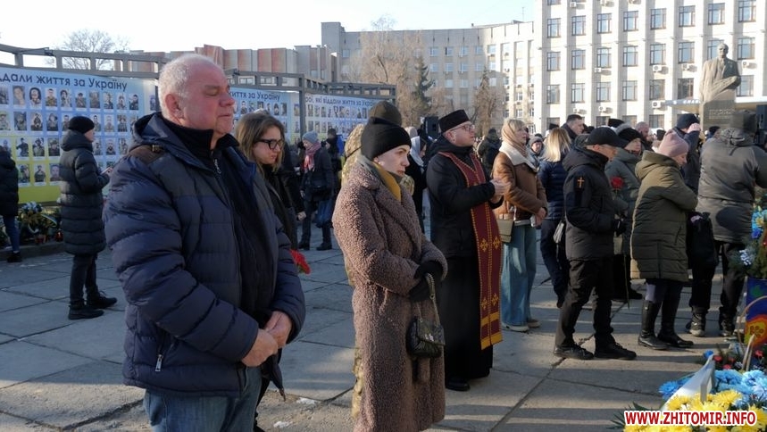 Рада Християнських Церков Житомирщини провела спільну молитву за полеглих воїнів, опісля присутні поклали квіти до стендів з портретами загиблих героїв.