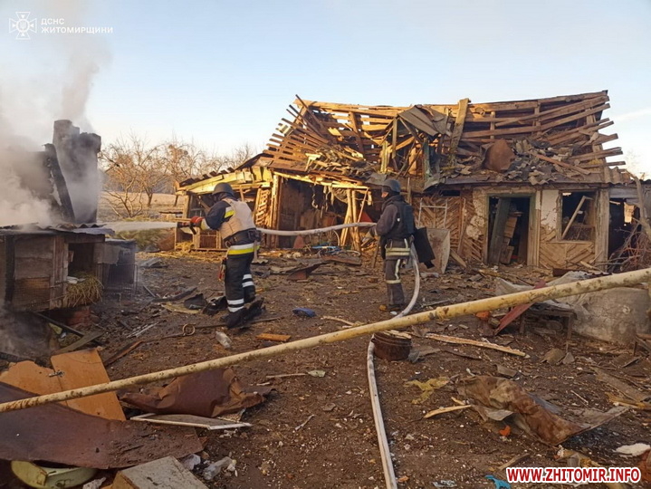 Під час масованої повітряної атаки пошкоджено житловий будинок та господарчу споруду у Житомирському районі.