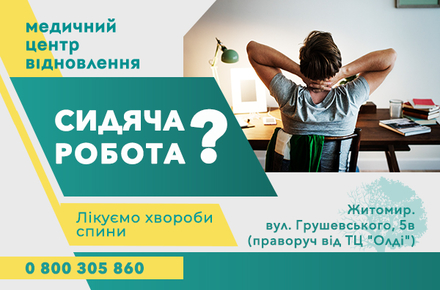 Відділення вертебрології, неврології, ортопедії та реабілітації працює за адресою: м. Житомир, вулиця Грушевського, 5-в (праворуч від ТЦ «Олді»).
