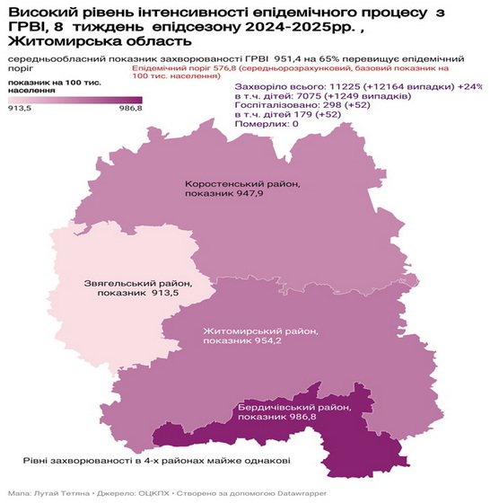 24 лютого Житомирський обласний центр контролю та профілактики хвороб повідомив, що в області ускладнюється епідемічна ситуація з ГРВІ.