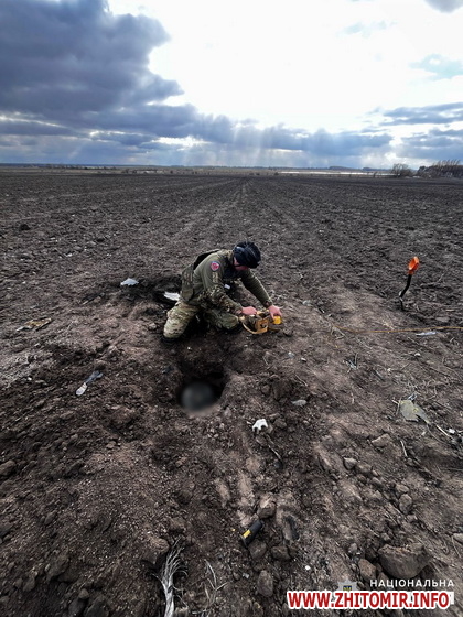 Фахівці вибухотехнічної служби поліції Житомирської області обстежили місця падіння уламків ракет і безпілотників після нещодавніх обстрілів України армією рф. У результаті виявили кілька бойових частин БпЛА, що не здетонували, а також касетні елементи, розкидані в полі. Про це 4 березня 2025 року повідомляє Головне управління Національної поліції в Житомирській області.