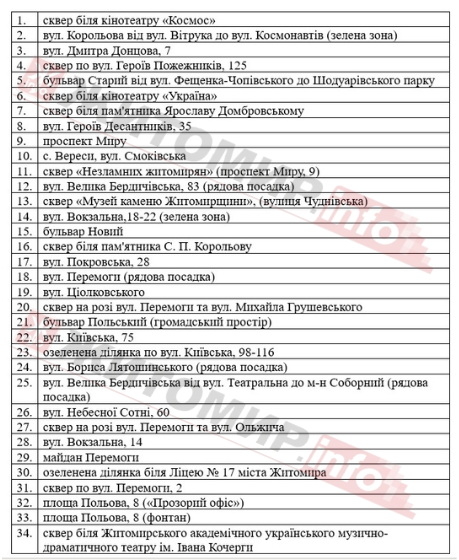 у червні, жовтні, листопаді. Протягом цих місяців висаджено дерева та кущі на 34 локаціях Житомирської міської територіальної громади», - йдеться в проєкті рішення.