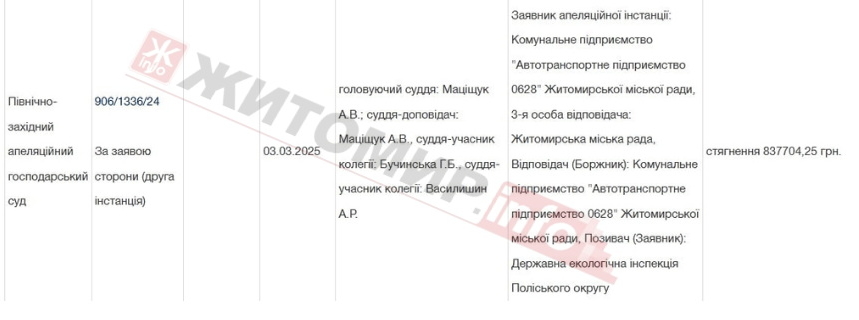 Зауважимо, за даними порталу Судова влада України комунальне підприємство «Автотранспортне підприємство 0628» Житомирської міської ради 3 березня подало апеляцію на рішення Господарського суду Житомирської області від 17 лютого 2025 року.