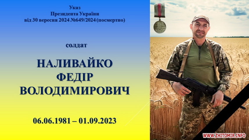 Як повідомляв Житомир.info, 24 січня 2025 року у Житомирі родинам загиблих військовослужбовців передали державні нагороди.