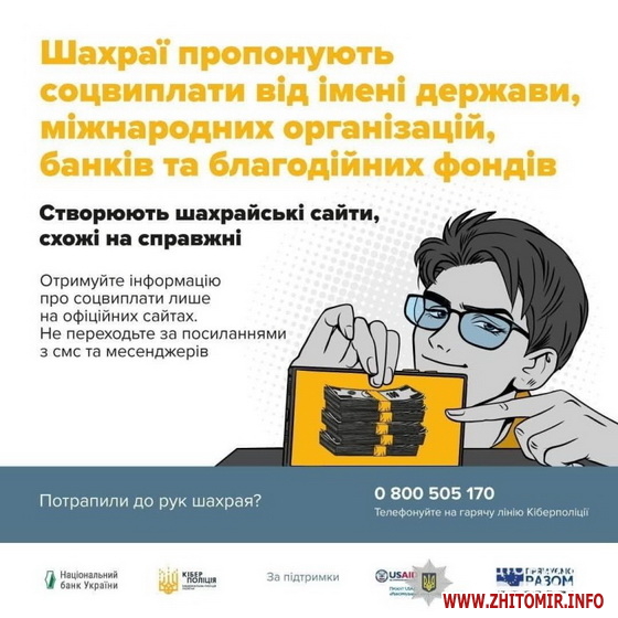 Як повідомляв Житомир.info, у грудні 2024 року жителька Житомирської області хотіла отримати грошову допомогу від держави, перейшла за фішинговим посиланням і втратила майже 17 тисяч гривень.