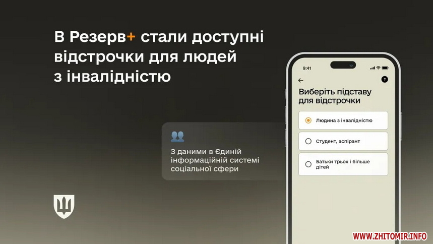 «У застосунку Резерв+ стали доступні відстрочки для людей з інвалідністю, дані про яких є в Єдиній інформаційній системі соціальної сфери (ЄІССС). Раніше відстрочку онлайн могли оформити лише люди з інвалідністю, дані яких знаходились в реєстрі Пенсійного фонду України (ПФУ), та мали відповідне пенсійне посвідчення», - йдеться в повідомленні.