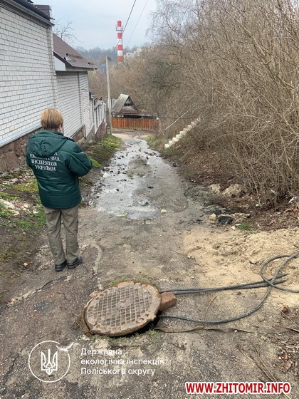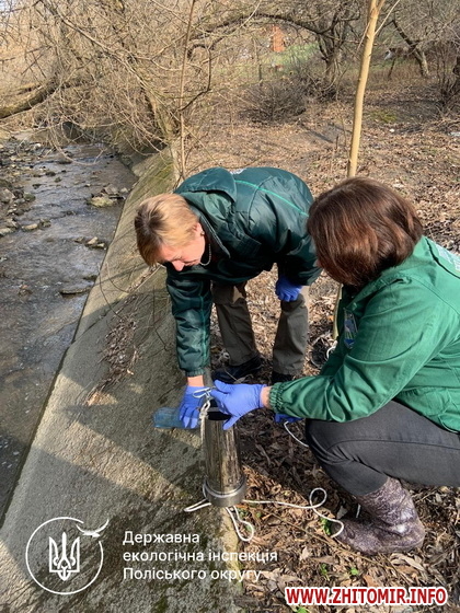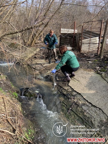 «31 березня, реагуючи на звернення громадян на телефонну «гарячу лінію» Інспекції щодо факту ймовірного забруднення стічними водами рівчака у районі вул. Івана Гонти у Житомирі, державні інспектори з охорони навколишнього природного середовища Поліського округу відділів державного екологічного нагляду (контролю) водних ресурсів та інструментально-лабораторного контролю здійснили виїзд за вказаними заявником координатами та у результаті обстеження територіївиявили факт скиду стічних вод у струмок по вулиці Івана Гонти, 16 (м. Житомир) з подальшим потраплянням в річку Тетерів. При візуальному огляді – вода сіро-зеленого кольору з відчутним фекальним запахом», - йдеться у повідомленні.