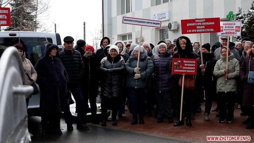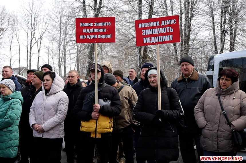 З плакатами в руках біля комунального некомерційного підприємства «Житомирська багатопрофільна опорна лікарня» Новогуйвинської селищної ради 10 квітня зібралися понад дві сотні людей. Люди вимагали не закривати неврологічне відділення, яке керівництво медзакладу вирішило об’єднати з терапевтичним.