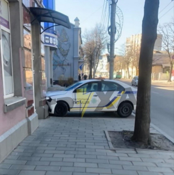 В центрі Житомира вдень 13 квітня патрульний автомобіль в’їхав у будинок на Великій Бердичівській.