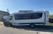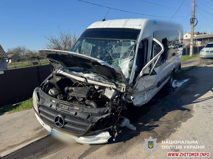 У с. Тетерівка Житомирського району вдень 21 квітня сталася ДТП за участю легкового автомобіля та маршрутки. Від зіткнення у легковому автомобілі дуже пошкоджений бампер, його розвернуло посеред дороги.