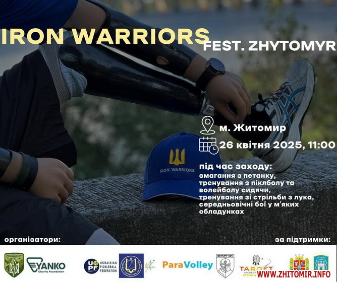 У Житомирі 26 квітня пройде спортивний фестиваль «IRON WARRIORS fest», який має на меті об’єднати ветеранів та цивільне населення.