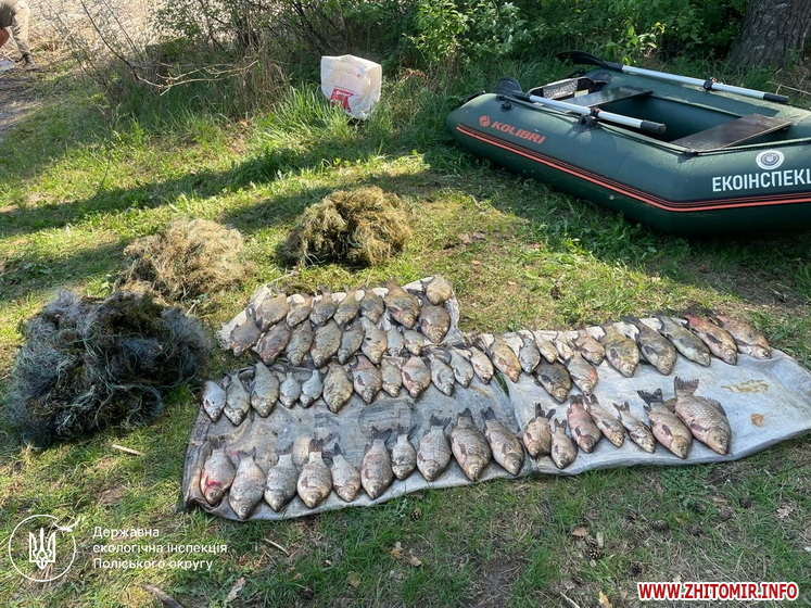«Держекоінспекція продовжує проводити рейдові заходи щодо запобігання порушень нерестової заборони, правил любительського рибальства на території Житомирської області. Так, 28 квітня 2025 року під час проведення таких заходів на річці Ірпінь поблизу села Рудка Житомирського району екоінспекторами Поліського округу було виявлено факт незаконного добування водних біоресурсів. Всупереч нерестовій забороні та правилам спортивного та любительського рибальства, двоє чоловіків за допомогою трьох ліскових сіток загальною довжиною 210 м зловили 19 екземплярів карася та 40 екземплярів ляща. Сума збитків, заподіяних рибному господарству, склала майже 96 тис. грн», - йдеться в повідомленні.