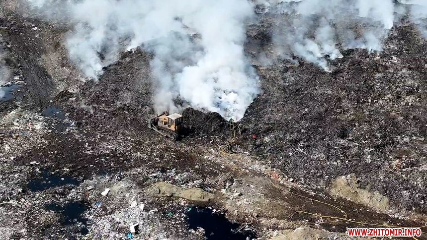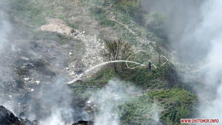 «Наразі (ред. 11:30 ранку) у Житомирі триває гасіння масштабної пожежі на полігоні твердих побутових відходів. Сьогодні в ночі пожежа була локалізована на площі 1 300 кв. м. Наразі до гасіння долучено 11 одиниць пожежної та спеціальної техніки, а також 37 рятувальників. Вогнеборці докладають максимум зусиль, аби як найшвидше погасити пожежу. Ми проклали додаткове водопостачання, також залучено 2 працівники та 2 екскаватори від підприємства, аби дістатися у важкодоступні місця. Неможливо спрогнозувати, коли можна буде загасити пожежу такого масштабу, але як я і сказав, ми докладаємо максимум зусиль. Для цього залучається більша кількість особового складу, а також техніка», – говорить пресофіцер ГУ ДСНС України у Житомирській області Андрій Денисюк.