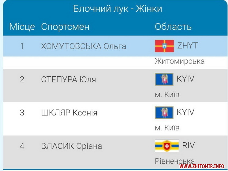 Як повідомляє Житомир.info, 29 серпня 2024 року стало відомо, що житомирська лучниця Ольга Хомутовська третій рік поспіль здобуває перемогу на чемпіонаті України зі стрільби з лука.