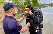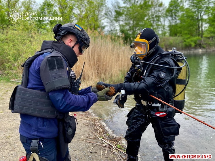 «5 травня у Коростенському районі фахівцями відділення підводного розмінування мобільного рятувального центру швидкого реагування ДСНС України у складі чотирьох осіб проведено обстеження водойми, де напередодні громадянин помітив підозрілі предмети», - йдеться у повідомленні.