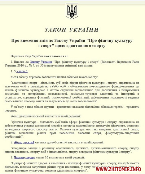 - Міністерство молоді та спорту України офіційно координуватиме розвиток адаптивного спорту;