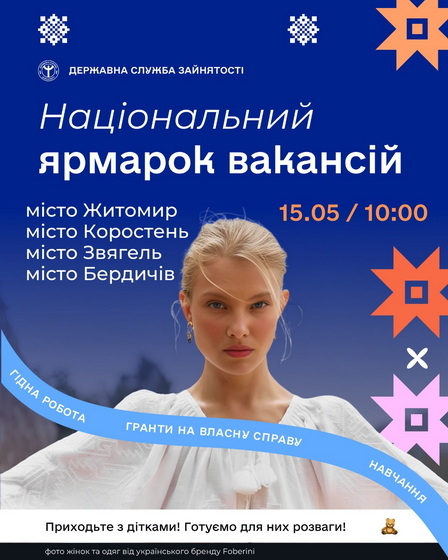 У Житомирі, Коростені, Бердичеві та Звягелі 15 травня відбудуться ярмарки вакансій. Участь у заходах візьмуть понад 50 роботодавців.