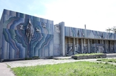 А це кінотеатр «Жовтень», який також не використовується за цільовим призначенням майже 20 років. В приміщенні глядацької зали зберігають старі меблі, потерті вивіски, новорічні прикраси. Хол кінотеатру функціонує як «Пункт незламності».