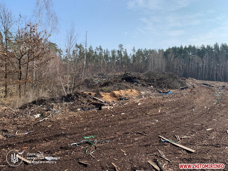 «Спеціалісти Державної екологічної інспекції Поліського округу під час рейдових заходів 27 березня 2025 року здійснили обстеження земель на території лісового масиву Філії «Столичний лісовий офіс» Державного спеціалізованого господарського підприємства «Ліси України», в межах Радомишльської територіальної громади. За результатами обстеження виявлено розміщення виробничих відходів деревообробки (тирси) та інших побутових відходів на земельних ділянках на площі 1,3 га середньою вистою 1,7 м та на площі 0,4 га середньою висотою 1,7 м на відкритому ґрунті без ізоляції, яка виключала б фільтрацію рідкої частини відходів в ґрунтові води та інфільтрацію ґрунтових вод, що призвело до засмічення даної земельної ділянки», - йдеться в повідомленні.