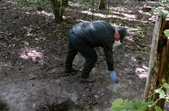 Сьогодні, 14 травня, на території мисливських угідь поблизу Житомира розкладали спеціальні вакцини-приманки вручну. Такий метод дозволяє охопити важкодоступні ділянки та підвищити ефективність щеплення.