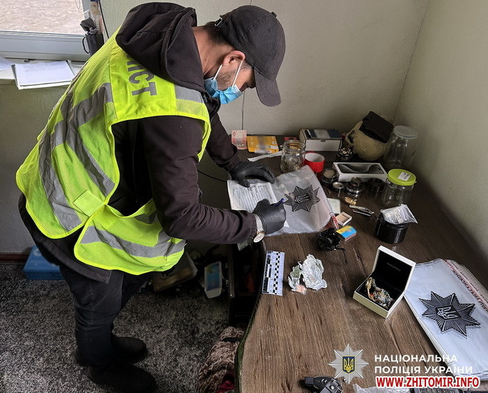 «Спецоперацію проводили поліцейські Управління боротьби з наркозлочинністю за координації ДБН Національної поліції разом зі слідчими Слідчого управління та за підтримки оперативних підрозділів, кінологічного центру, спецпризначенців КОРД та РПОП ГУНП області, а також співробітників УСБУ та під процесуальним керівництвом Житомирської обласної прокуратури. Встановлено, що жителі Звягельщини стали учасниками розгалуженої мережі з виготовлення та збуту заборонених речовин. Зокрема, 26-річний фігурант налагодив виробництво психотропної речовини альфа-PVP в приватному будинку на околиці села, який придбав з цією метою. Там він обладнав високотехнологічну нарколабораторію, де проводився синтез та фасування «готової продукції». Він займався оптовим постачанням наркотиків шляхом розкладання так званих майстеркладів та відправлень через відділення логістичних компаній по всій території України», - йдеться у повідомленні.