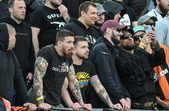 Вже перед овертаймами напроти обох ультрас вишикувалися поліціянти, і тут стало помітно різницю в настрої уболівальників. Донецькі ніяк не відреагували та продовжили підтримувати команду, а ось киянам це дуже не сподобалося. Були і пред’яви з боку вболівальників, і факи, поліціянтів посилали, обзивали, а для більшого «ефекту» кричали «Мусора со**ть». «Гірники» ж, напроти, вигукували «Донецьк – це Україна» та «Юзовка».