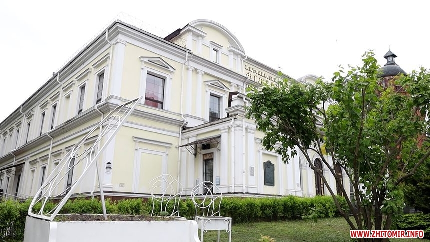 «Коли згорів старий житомирський театр у 1843 році, який знаходився на площі Корольова, житомиряни почали їздити й домагатися того, щоб їм побудували новий театр. І ось зробив проєкт архітектор Іван Штром, один із найвідоміших європейських архітекторів, і почали будувати у 1853 році й за два роки побудували. 6 жовтня 1855 року – це була перша вистава, було відкриття театру. Цьогоріч ми святкуватимемо 170 років. Житомирська обласна філармонія перейшла сюди у 1967 році», – розповідає заслужена артистка України Катерина Стрельцова.