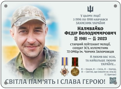 Крім того, ще на фасаді міського ліцею №6 планують розмістити меморіальну дошку захиснику Наливайку Федору Володимировичу.