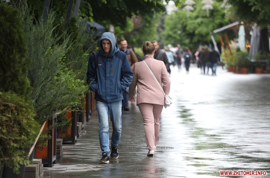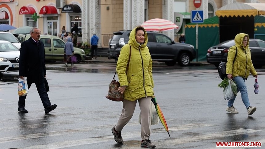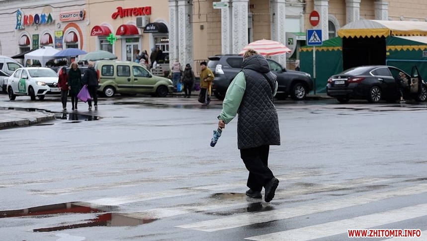 Житомиряни одягнули куртки та несуть в руках парасольки. Можна не поспішати ховати ці речі до шафи, бо найближчими днями потепління не очікується.