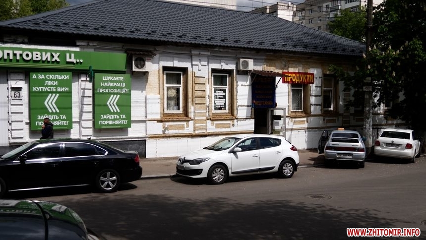 «Відповідно до історико-архітектурного плану Житомира будівля за адресою вул. Університетська, 63 – це рядова історична будівля. Взагалі забудова колишньої вул. Пушкінської формувалася в кінці XIX століття на початку XX століття. Ця будівля немає паспорта упорядження фасадів, тому можна сказати, що всі роботи на цій будівлі проводяться незаконно. До нас не зверталися за дозволом, не розробляли паспорт упорядження фасадів. Відповідно, цей паспорт немає погоджувальної проєктної документації», – розповідає завідуюча сектором з питань охорони культурної спадщини департаменту містобудування та земельних відносин Житомирської міської ради Олена Бабушко.