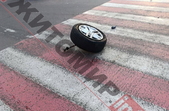 Колесо, що відпало від авто Ford, пошкодило транспортний засіб Nissan, водій якого зупинився на перехресті.