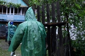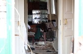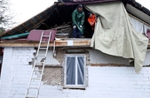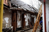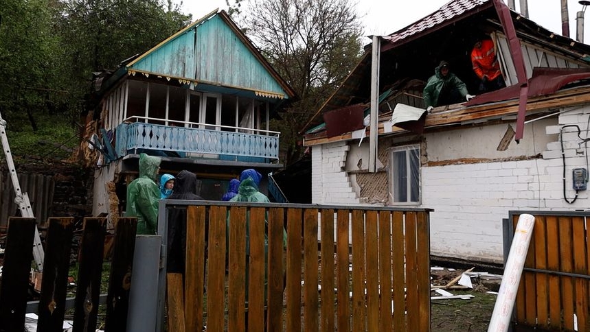 Біля будинку пані Лілії сусіди допомагають прибирати уламки, тут можна побачити вибиті вікна, двері, тріщини на стелі, зруйнований дах.