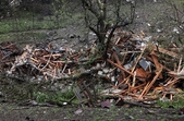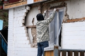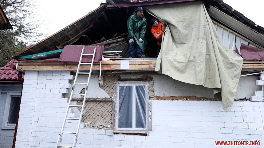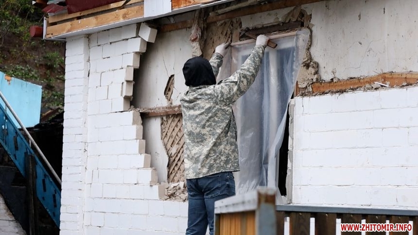 У місті Коростишів місцеві оговтуються від наслідків атаки, прибирають завали, заклеюють вікна плівкою. Серед руїн можна побачити дитячі іграшки.