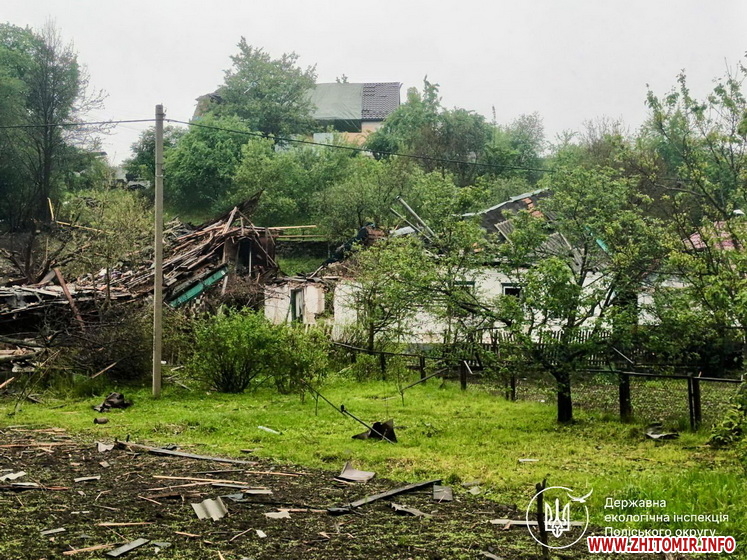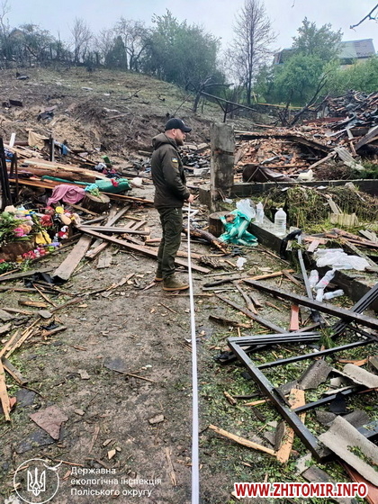 26 травня 2025 року державні інспектори з охорони навколишнього природного середовища Поліського округу виїхали на місце влучання у приватному секторі міста Коростишів, де внаслідок вибуху уламків крилатої ракети загинули діти.