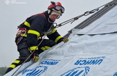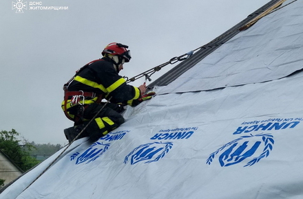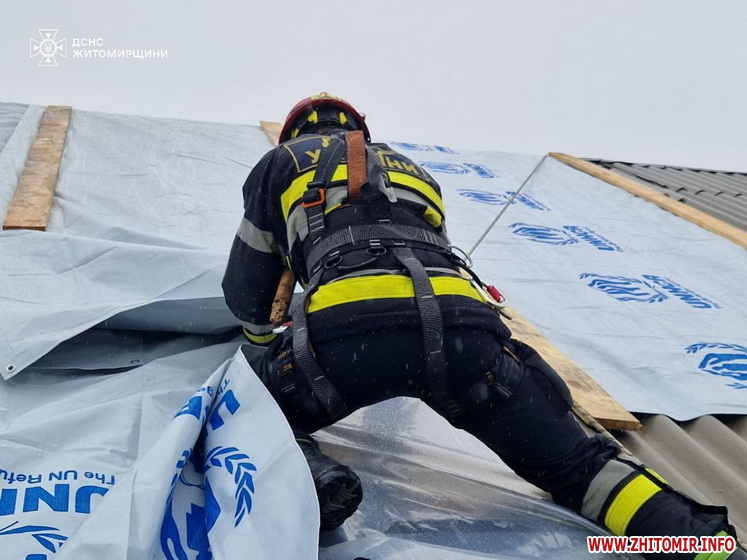 «Після ворожих обстрілів, яким піддалося місто напередодні, фахівці ДСНС допомагають його мешканцям ліквідовувати наслідки. Рятувальники-верхолази, які мають спеціальну висотну підготовку та значний досвід у проведенні аварійно-рятувальних робіт на висоті, укріплюють пошкоджені дахи будинків», - йдеться у повідомленнні.