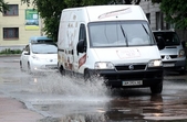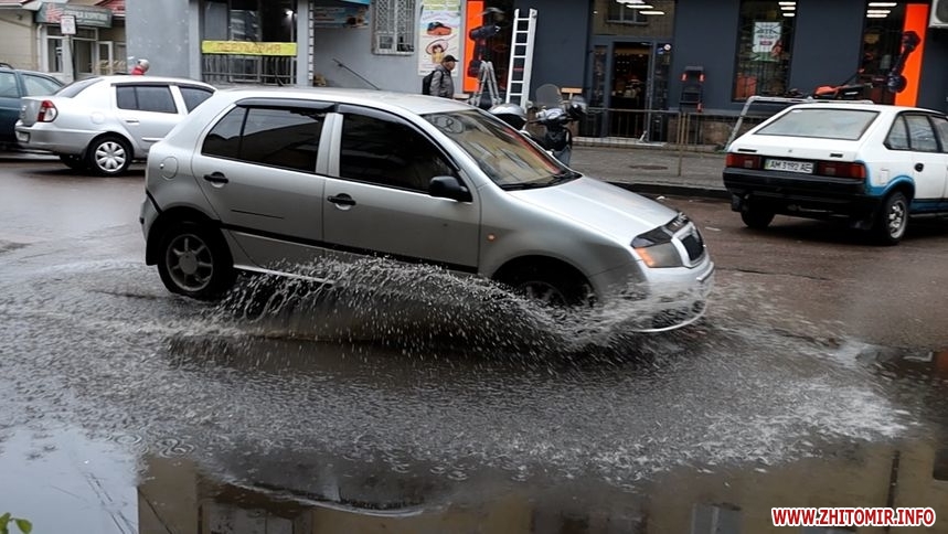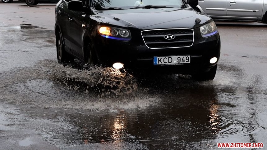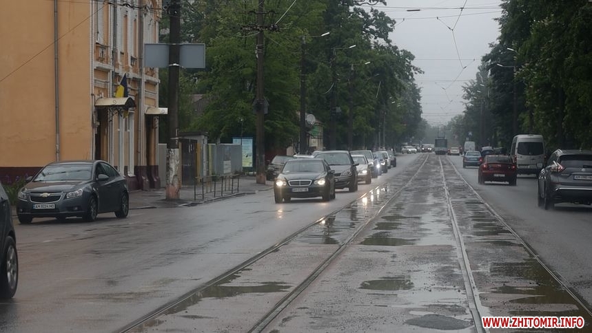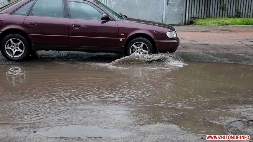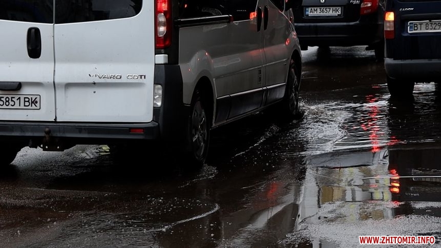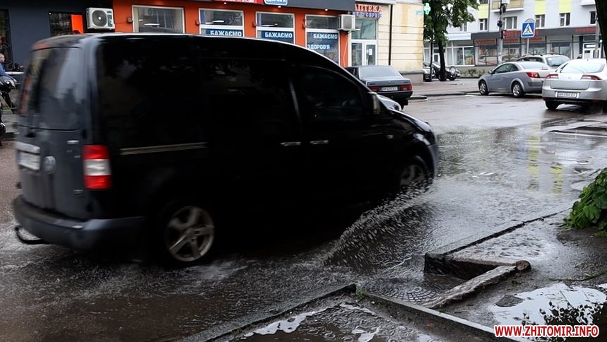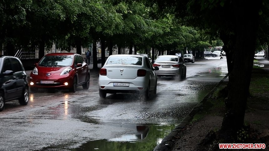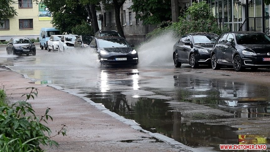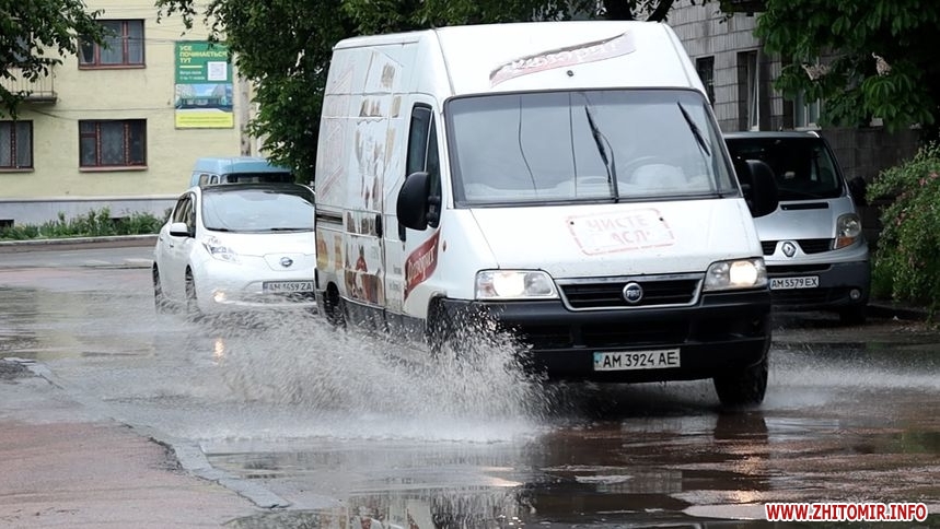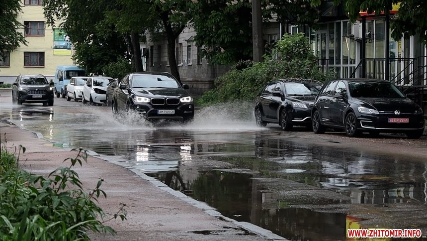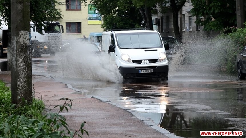 Зранку 26 травня у Житомирі дощило і деякі дороги міста підтопило. Хоча в обідню пору опади припинилися, на вулицях Хлібній, Князів Острозьких, Дмитра Донцова все ще можна побачити «Венецію».