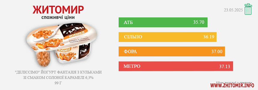 Моніторинг здійснено на основі інформації, отриманої за методом контрольної закупки 23.05.2025 р. у місцях продажу: АТБ, пр. Миру, 15 А, Фора, вул. Київська, 106, Метро, вул. Ватутіна, 55-в, Сільпо, вул. Житній ринок, 1