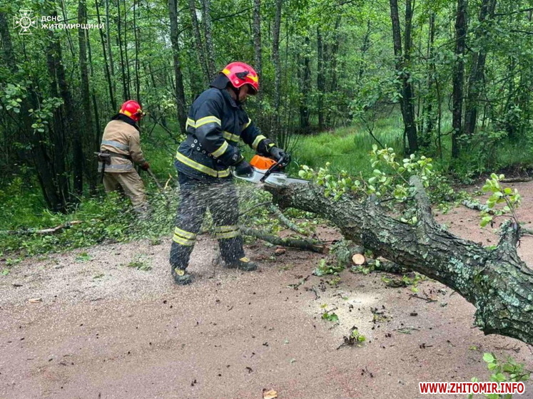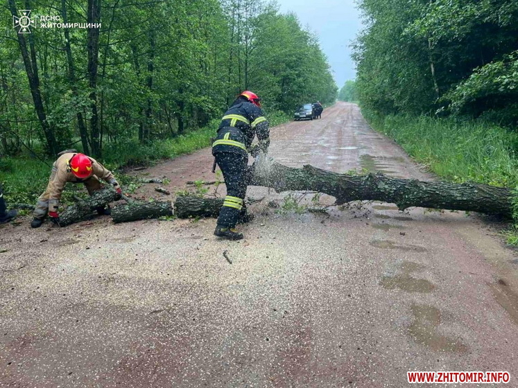 Як повідомляв Житомир.info, 15 травня рятувальники двічі виїжджали прибирати повалені дерева з доріг поблизу села Мирне Бердичівського району та Шевченкове Коростенського району.