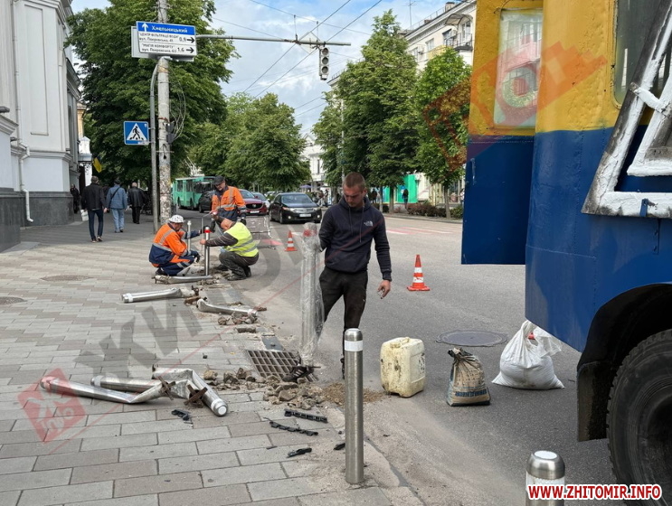 На вулиці Михайлівській зранку 29 травня з боку вулиці Київської замінили боларди, які пошкодив водій BMW.