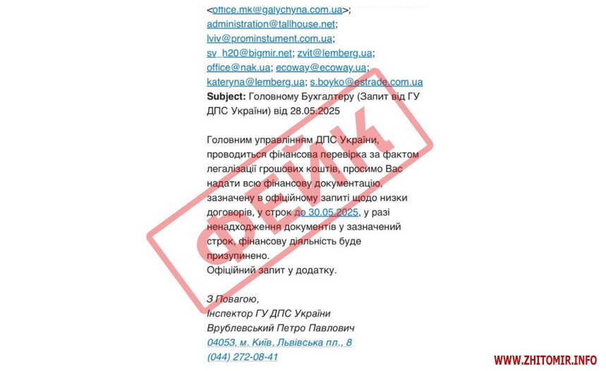 Державна податкова служба фіксує нову хвилю масового розповсюдження фейкових електронних листів нібито від імені ДПС.