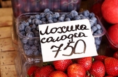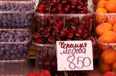 «Черешня у нас імпортна на сьогодні. Коштує 850 грн за кг, привезена з Іспанії. Наша черешня українська була 450 грн. Лохина теж привезена з Іспанії, української ще немає, не виросла. Ціна – 750 грн за кг, але завжди купують діткам», – розповідає продавчиня Ірина.