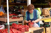 «Полуничка наша – житомирська й одеська. Одеська коштує 200-210 грн, житомирська – 160 за кг. Прийшли, купили та пішли, ажіотажу на полуницю немає. Думаю, ціна знижуватиметься. Зараз вже пішла наша житомирська, і погода дозволяє. В порівнянні з минулим роком ціна набагато більша, торік полуницю розбирали й вона була дуже смачна, солодка. А зараз є солодка, а є з кислинкою», – ділиться продавчиня Альона.