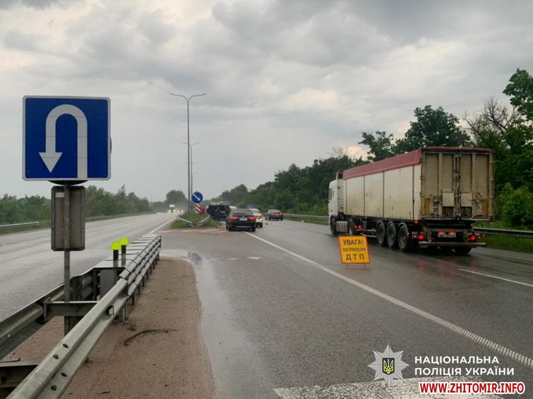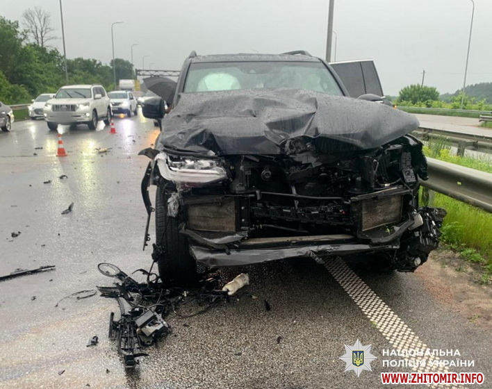 «Дорожньо-транспортна пригода сталася 3 червня близько 17:30 на автошляху Київ – Чоп, поблизу села Великих Кошарищ. Попередньо, сталося зіткнення мінівена Renault, під керуванням 33–річного жителя Житомирського району, та позашляховика Toyota», - йдеться у повідомленні.