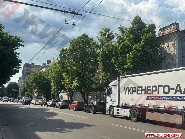 На фото видно, що внаслідок зіткнення рух транспорту ускладнився на Великій Бердичівській, поблизу бульвару.