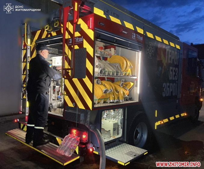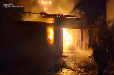 «Сьогодні вночі через російську атаку у Житомирі виникла пожежа. Рятувальники оперативно прибули на місце події. Горіла одноповерхова будівля. Силами бійців ДСНС пожежу ліквідовано за 40 хвилин», - розповіли у ДСНС.